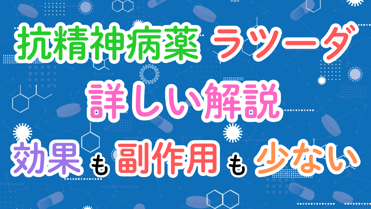 ラツーダは、SDA(セロトニン・ドーパミン遮断薬)です。従来の定型抗精神病薬より錐体外路症状などの副作用が少なく、賦活作用(元気にさせる作用)が強いです。