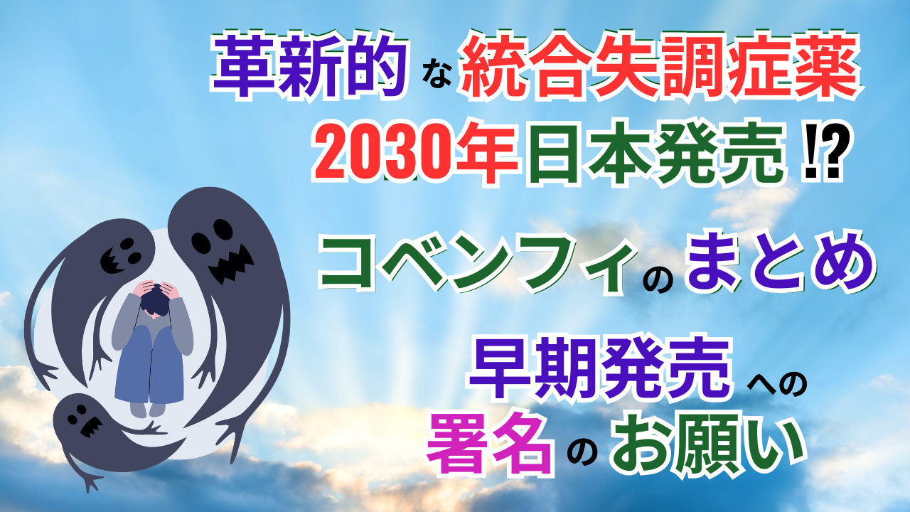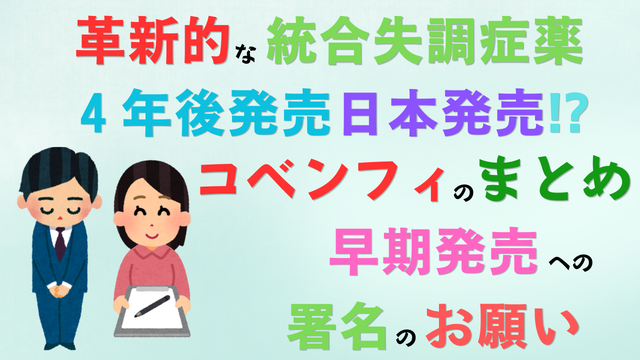 また、コベンフィは、既存薬に追加されて使われる補助薬としての適応も目指されています。既存薬だけでは幻聴などが残ってしまう患者や、治療抵抗性の患者に効くかもしれません。