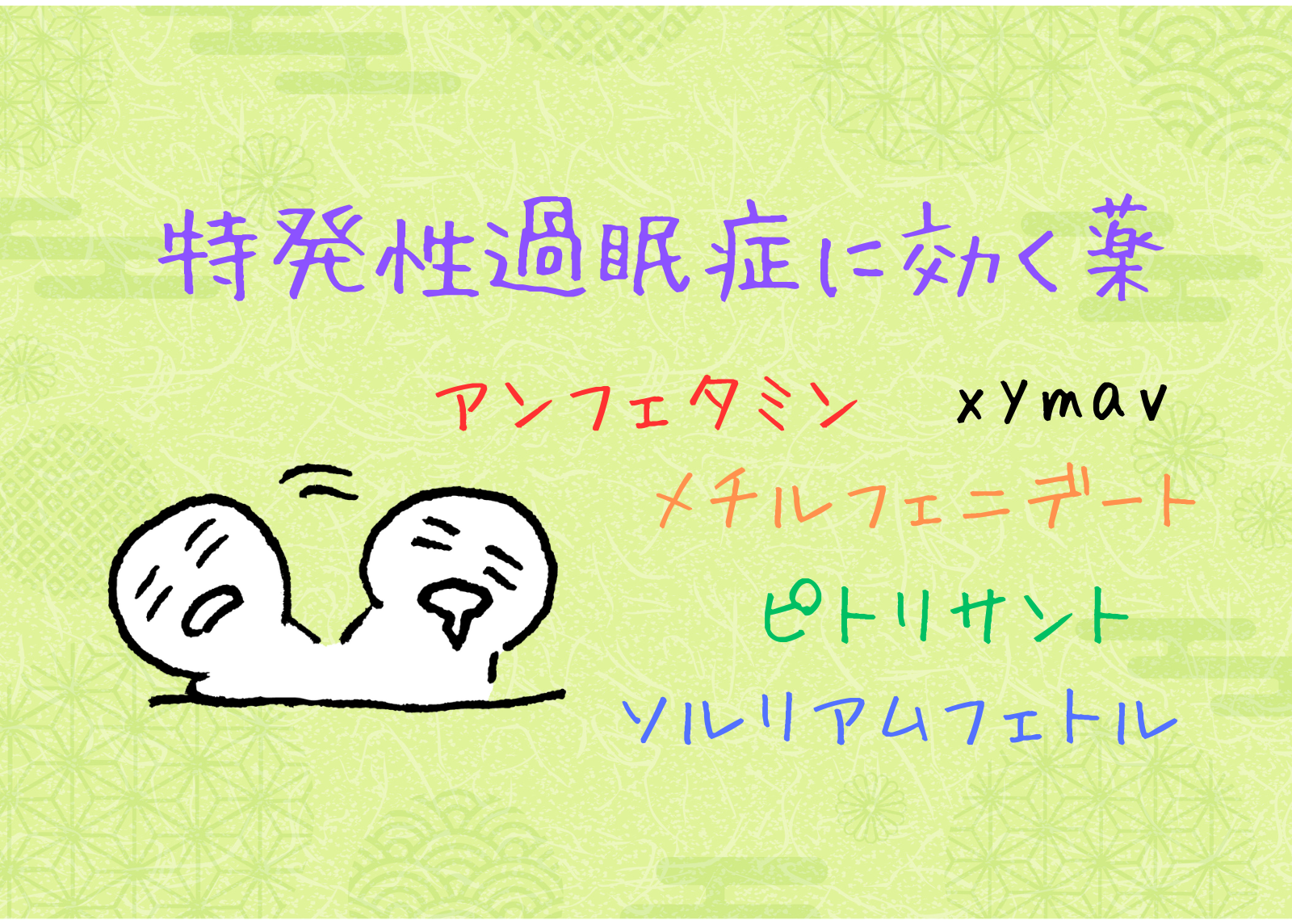 特発性過眠症に使われる薬は、基本的にナルコレプシーの薬と同じらしい。