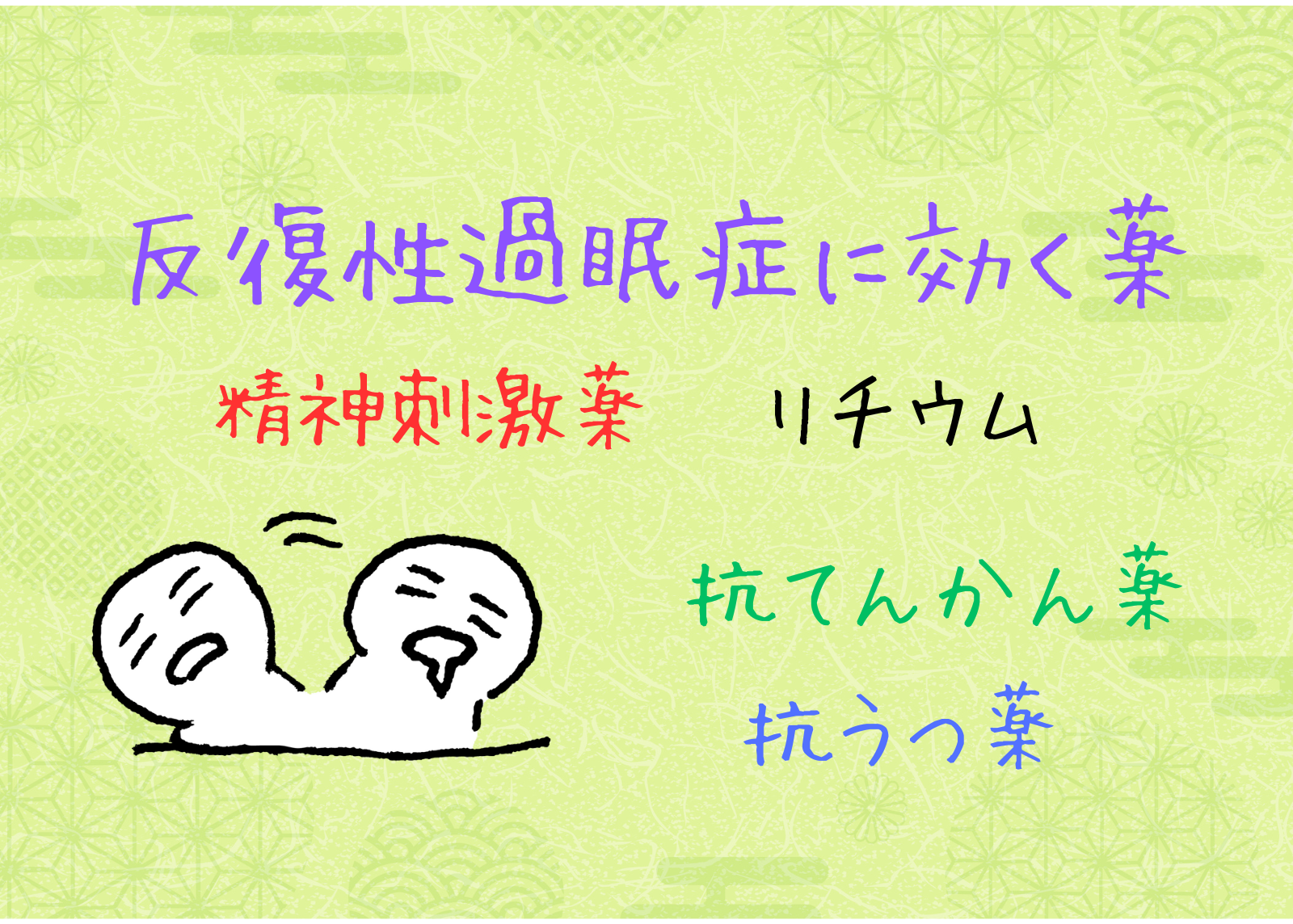 - 反復性過眠症にはリチウムが一番良く効きます。