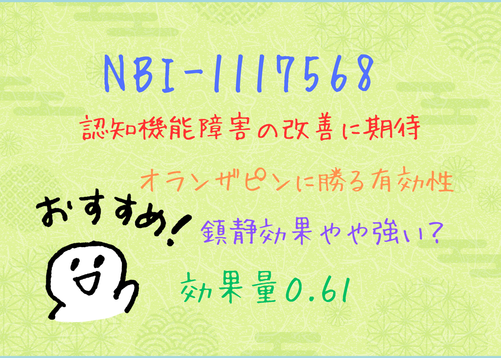 【フェーズ2試験成功】「NBI-1117568」結果データの詳しい分析/オランザピンに勝る有効性