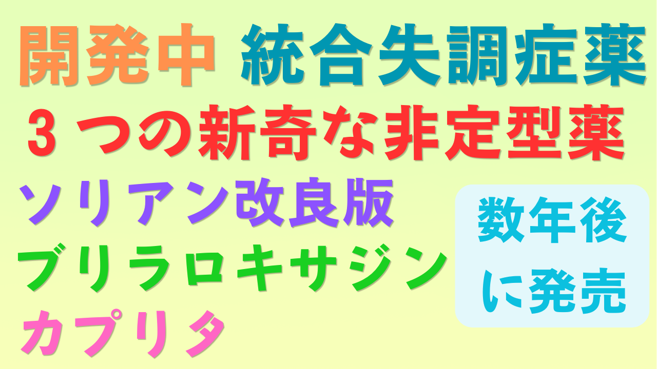 皆さん、こんにちは。今回は、今後何年かで発売される可能性のある抗精神病薬のうち、カプリタ、ブリラロキサジン、LB-102(ソリアンの改良版)の3つの薬についてお伝えします。